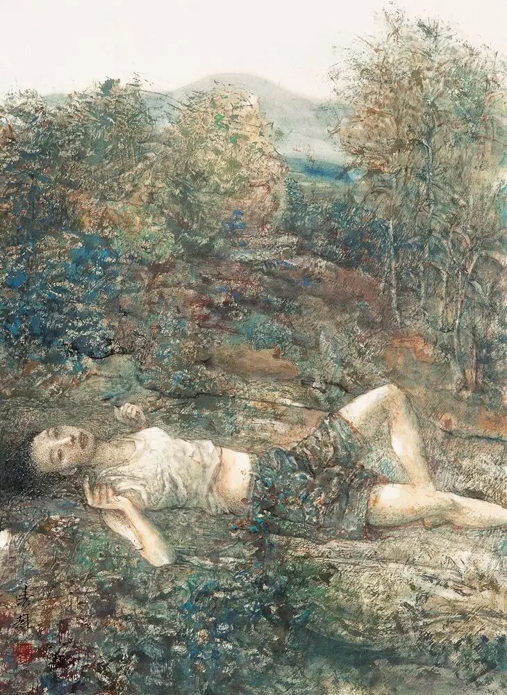 曹辉,躺着的女孩,纸本设色,54.5×40cm,2011