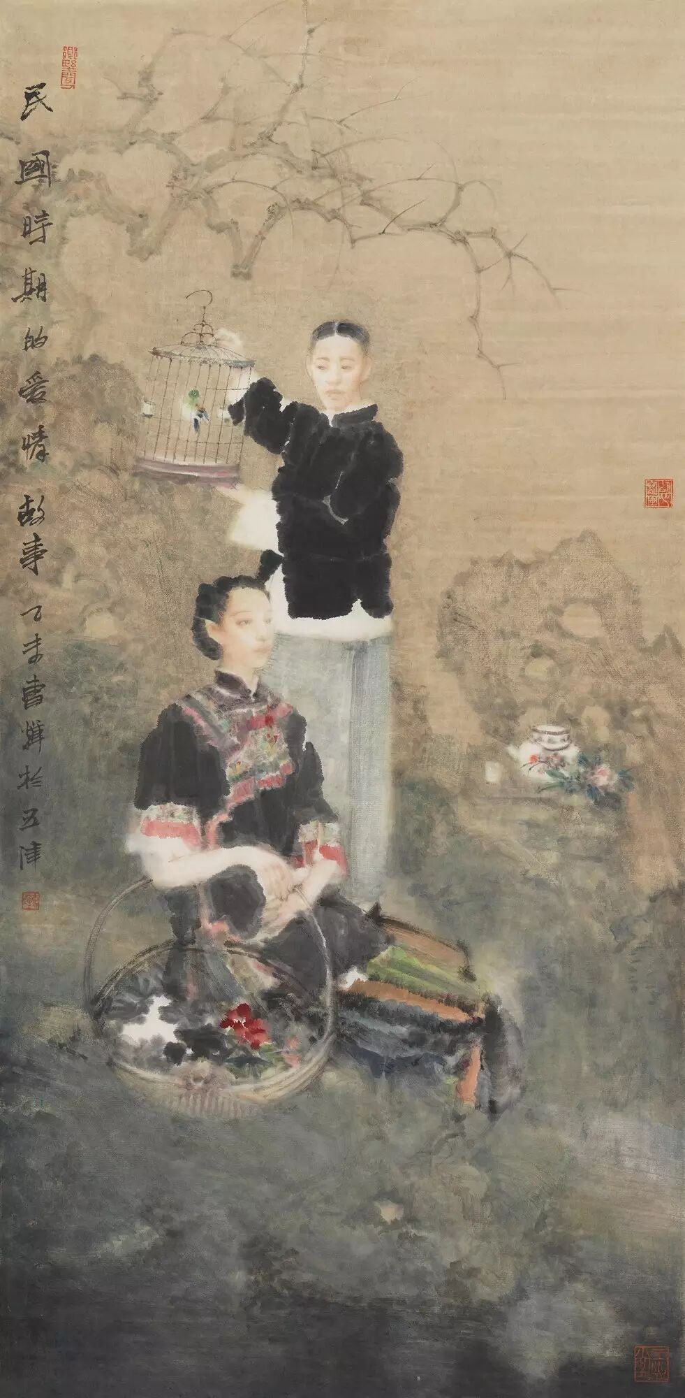 曹辉,民国时期的爱情故事,纸本设色,96.5×47.5cm,2015