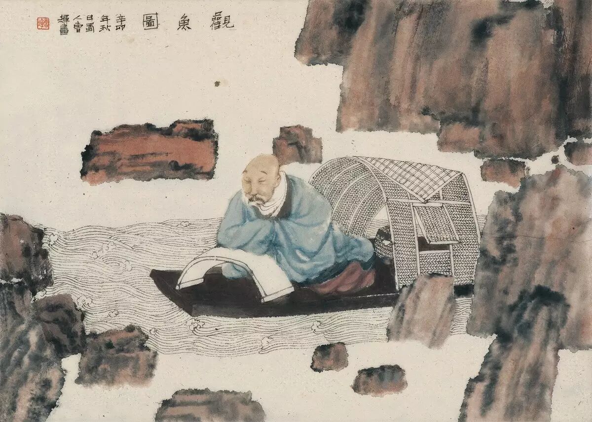 曹辉,观鱼图,纸本设色,61×44cm,2011