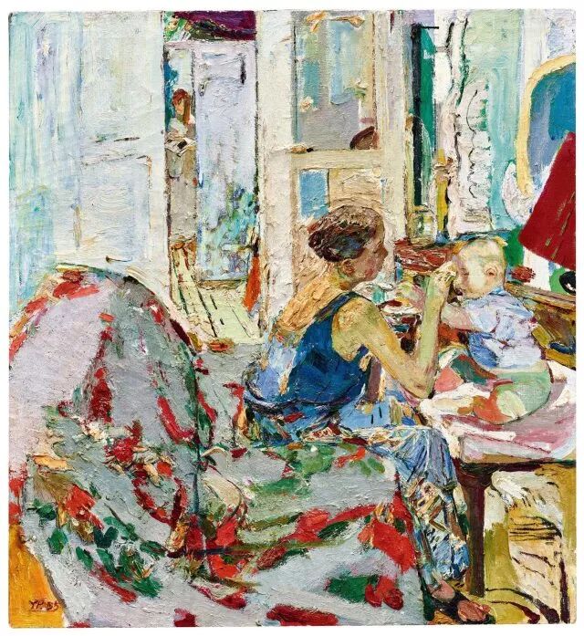 闫平《母与子——吃饭》布画油彩 120×110cm 1995年