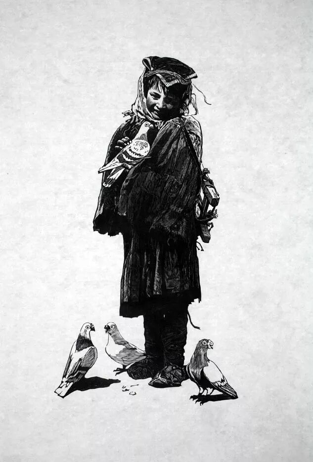 阿鸽《鸽子》 82×50cm 木刻版画 1984年