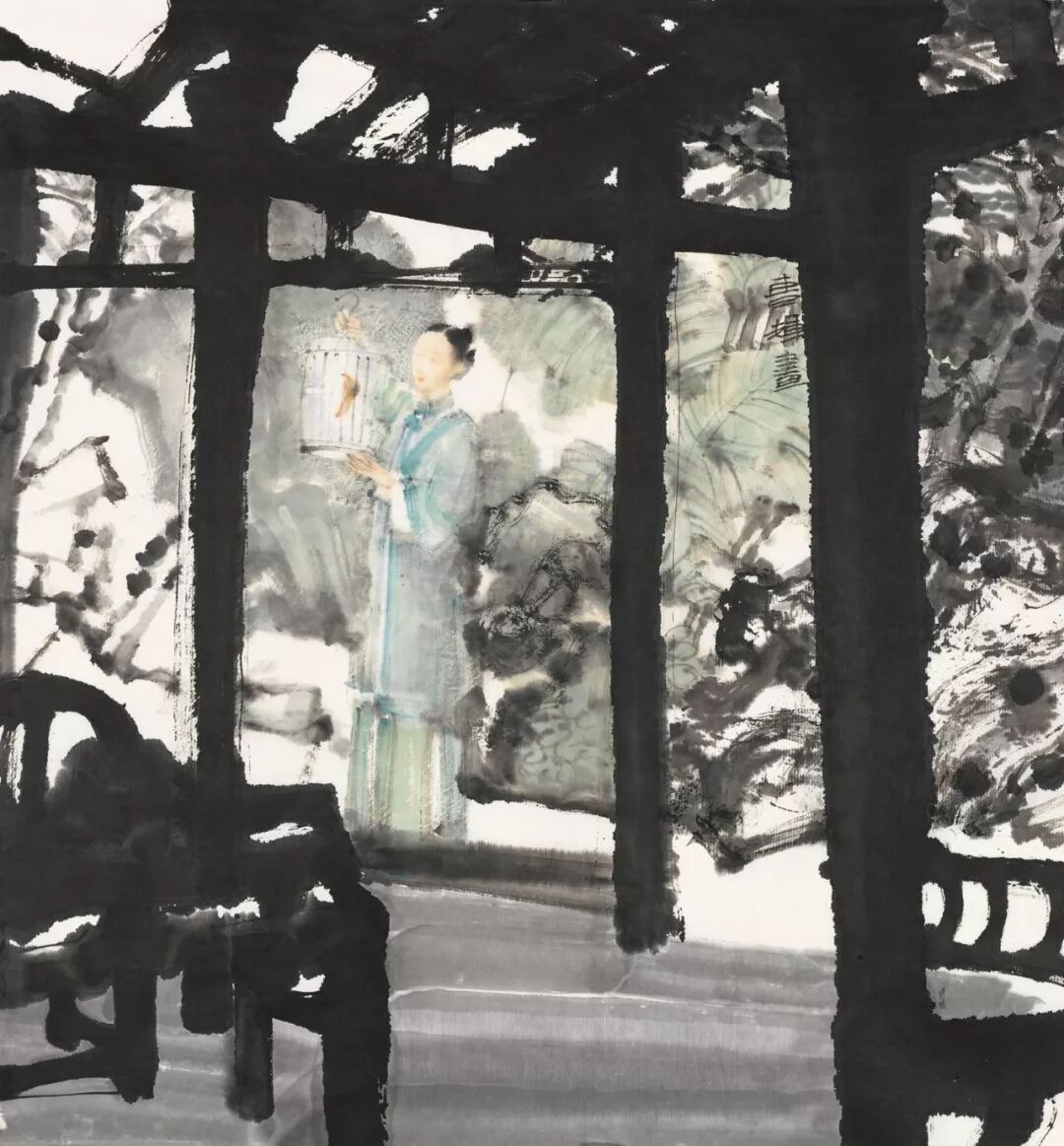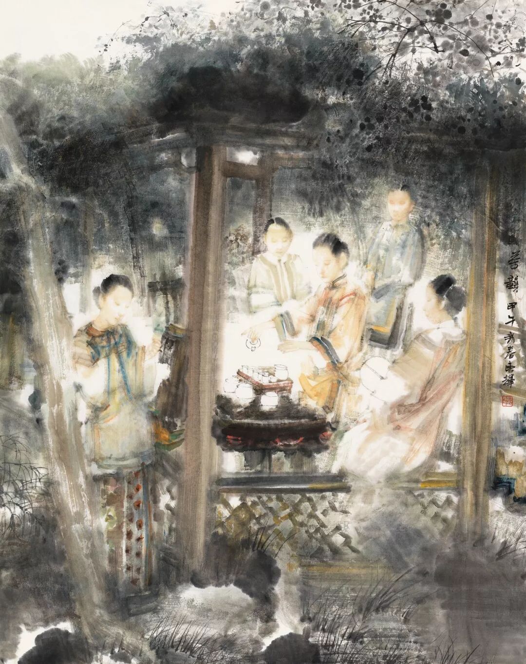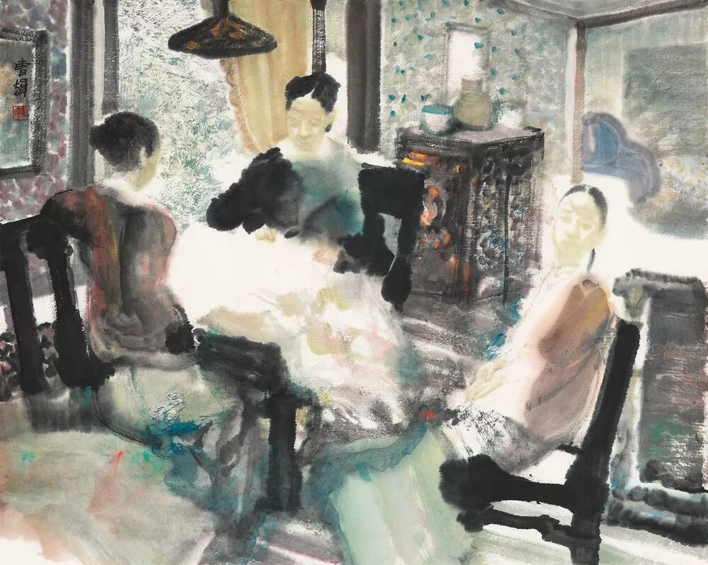 谈到对女性角色的钟情,曹辉说:“民国女性旧梦,是我表现追求的意趣。一是历史的诱因,觉得那个时候的人与物特别有味道。二是感到其间有叙述不尽的情结。如同画老茶馆一样,民国女性只是我表现心结的一个载体,我喜欢在朦胧中去表现女性的一丝丝忧郁与一缕缕娇情,一抹抹温润和一种种情思。从技术层面讲,我是想利用这类题材,对表现室内空间人物作一种探索。中国水墨人物,绝少表现室内的,这是为什么?我是想画出这么一批画得到一个答案。因而在每幅画上,我都在加上一点什么,或减去一点什么。”