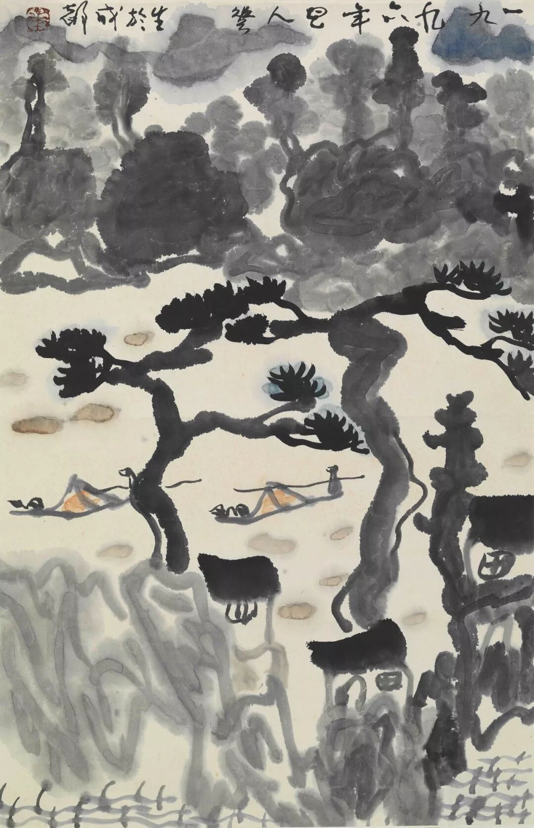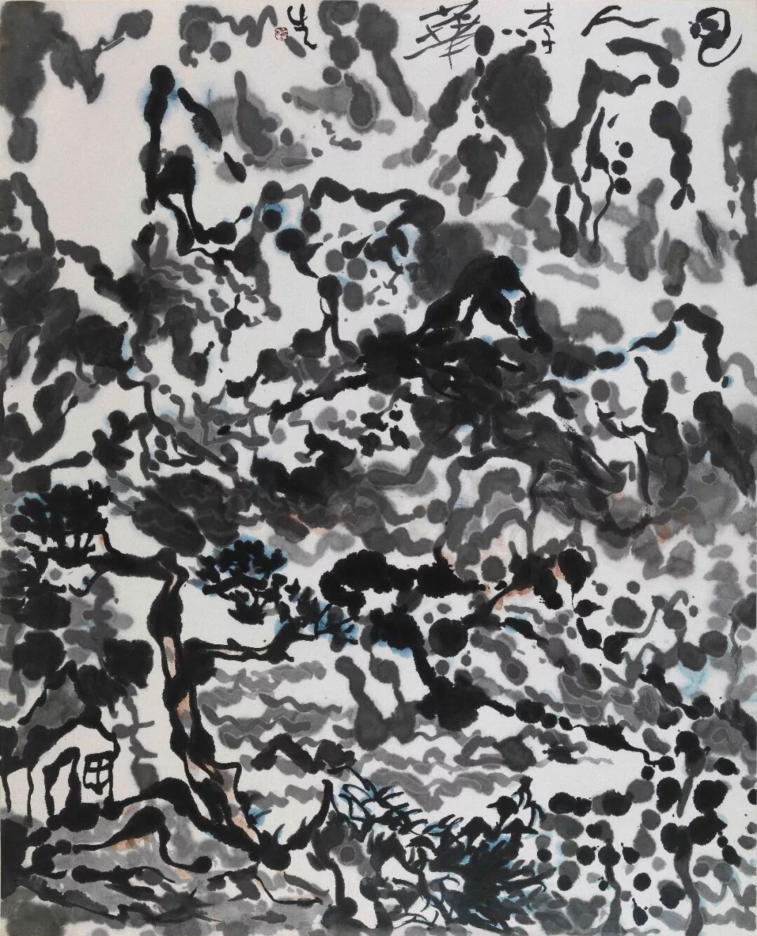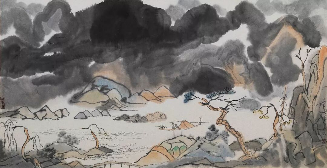 据闻,华生曾数次驱车川藏高原拥抱大山大水。后在成都第二届双年展上见其高三米长约十余的高原图水墨巨幛,气势雄浑,极具张力,一洗他八十年代那些符号化的山水图格局。其后偶见一些着九十年代年款的山水作品,有的缜密,有的放纵,有的轻松快意……可以看到画家内心总有一种不可遏制的表现欲。晚年,一会山水图,一会格子图,一会传统,一会前卫。看似矛盾其实是一致的,这就是华生。一生总想搞出个与众不同的名堂,总在不断的抛弃,不断的探索,才情横溢锐不可挡的华生正在绘画创新之路的征程上驰骋,然生命却嘎然而止,痛哉!惜哉!