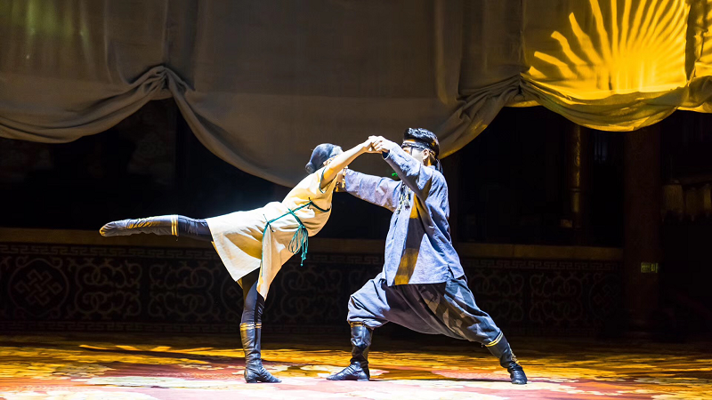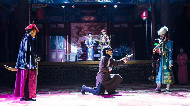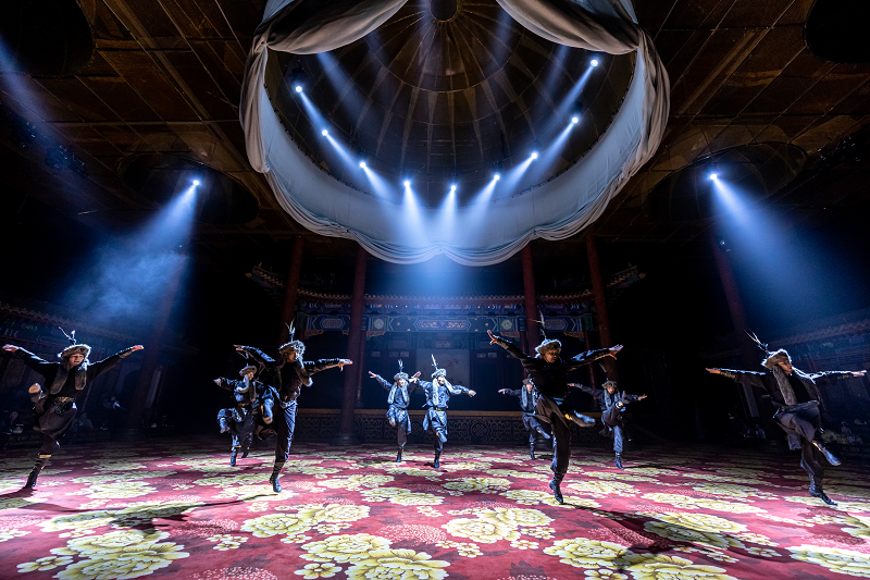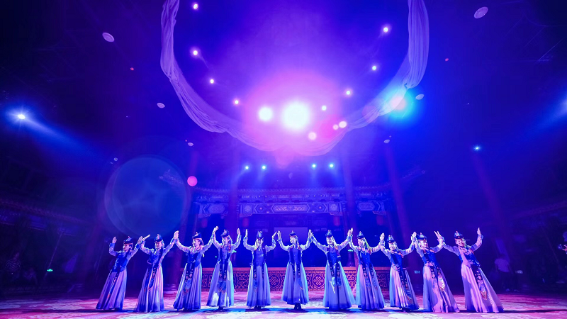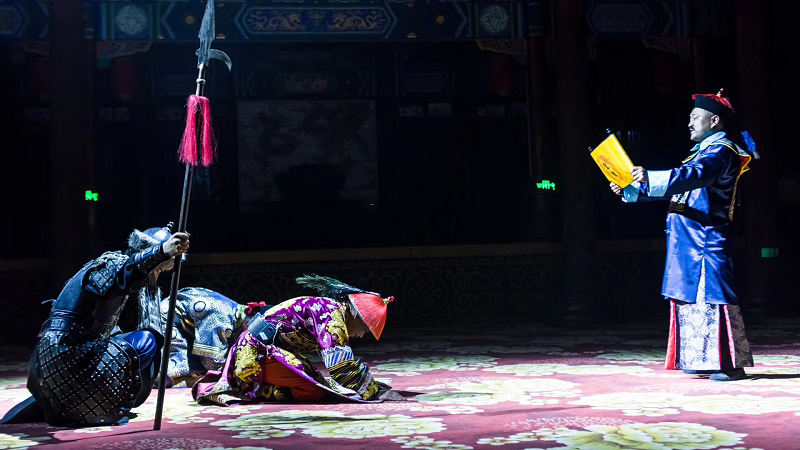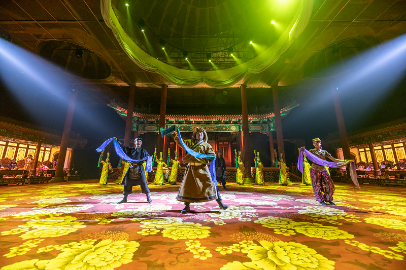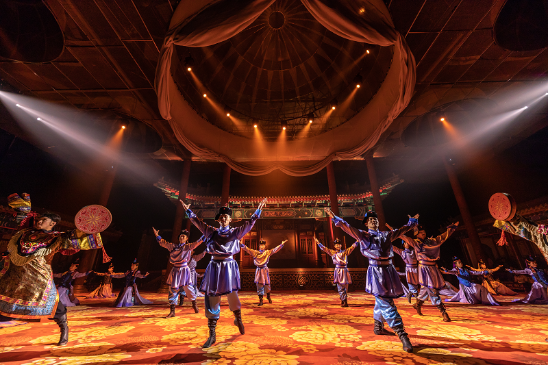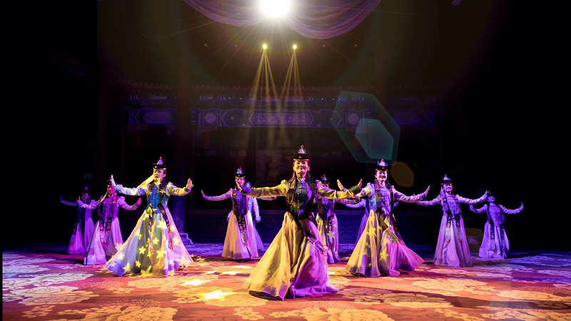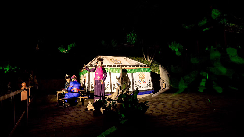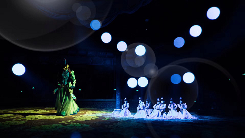 在演出的过程中,身着华美服饰的宫女以宫廷礼仪呈上美食,观众们逐一品尝。长调、多种蒙古族传统舞蹈穿插表演,具有极高的艺术水准。全剧通过光影、舞蹈、对话、美食等多重因素交织引领,使得观众轻易就走进了百年城池的古老内心。
