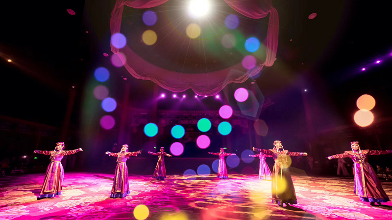 在赵章翔为阿拉善打造的《盛宴系列》长卷轴里,《王府盛宴》的篇幅牢牢地把握着“王”的气度和风范,“宴”的格局和场面。观众们置身的是舞台,也是昔日王爷府,一瞬穿越回百年前。