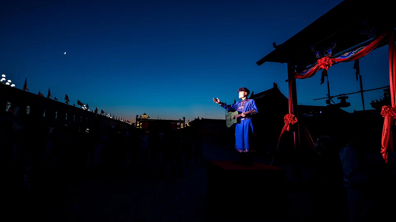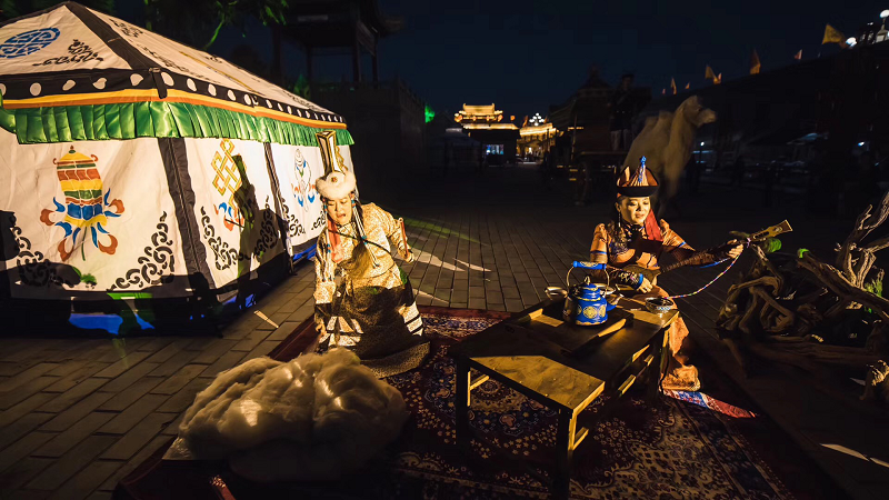 或者从观赏《王府盛宴》开始,观众会对白日质朴的定远营古城变换印象。从它的夜色旖旎中抬眼望去,是三百年的波澜,也将观望到远至旧时器就有人类活动的阿拉善。它使得游客的到访不再拘泥于自然,感受的触角可以远一点,再远一点。