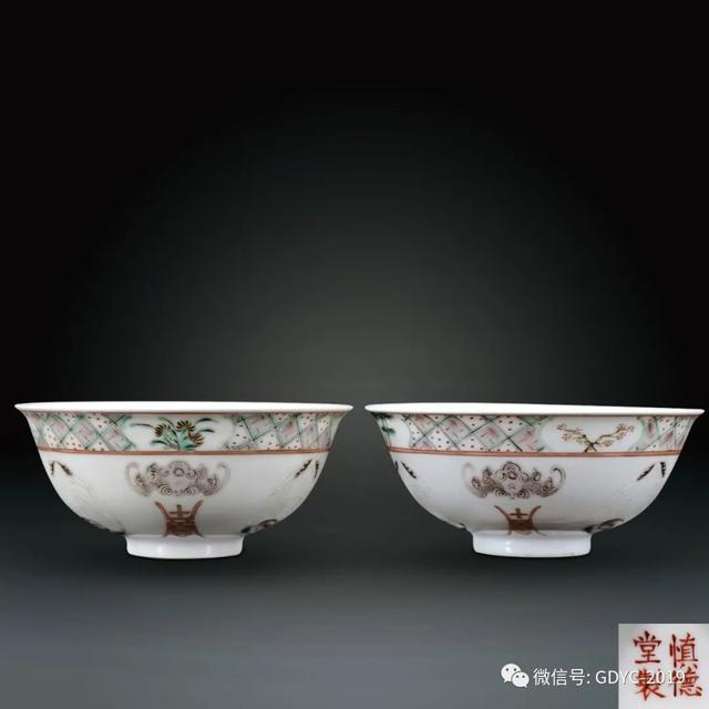 此对碗敞口,深腹,圈足,着色淡雅,碗底部落”慎德堂制”款,道光皇帝出于对慎德堂的偏爱,要求慎德堂的日用品上均带“慎德堂制”款,此对碗整体造型规整,纹饰秀雅,实为道光时期的佳品。