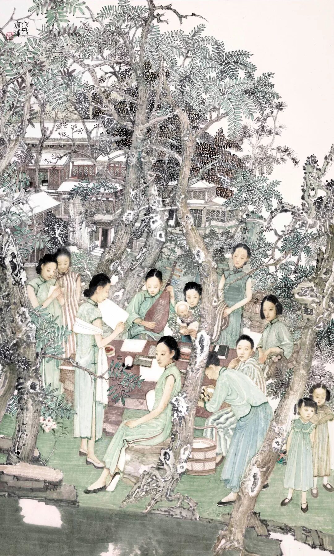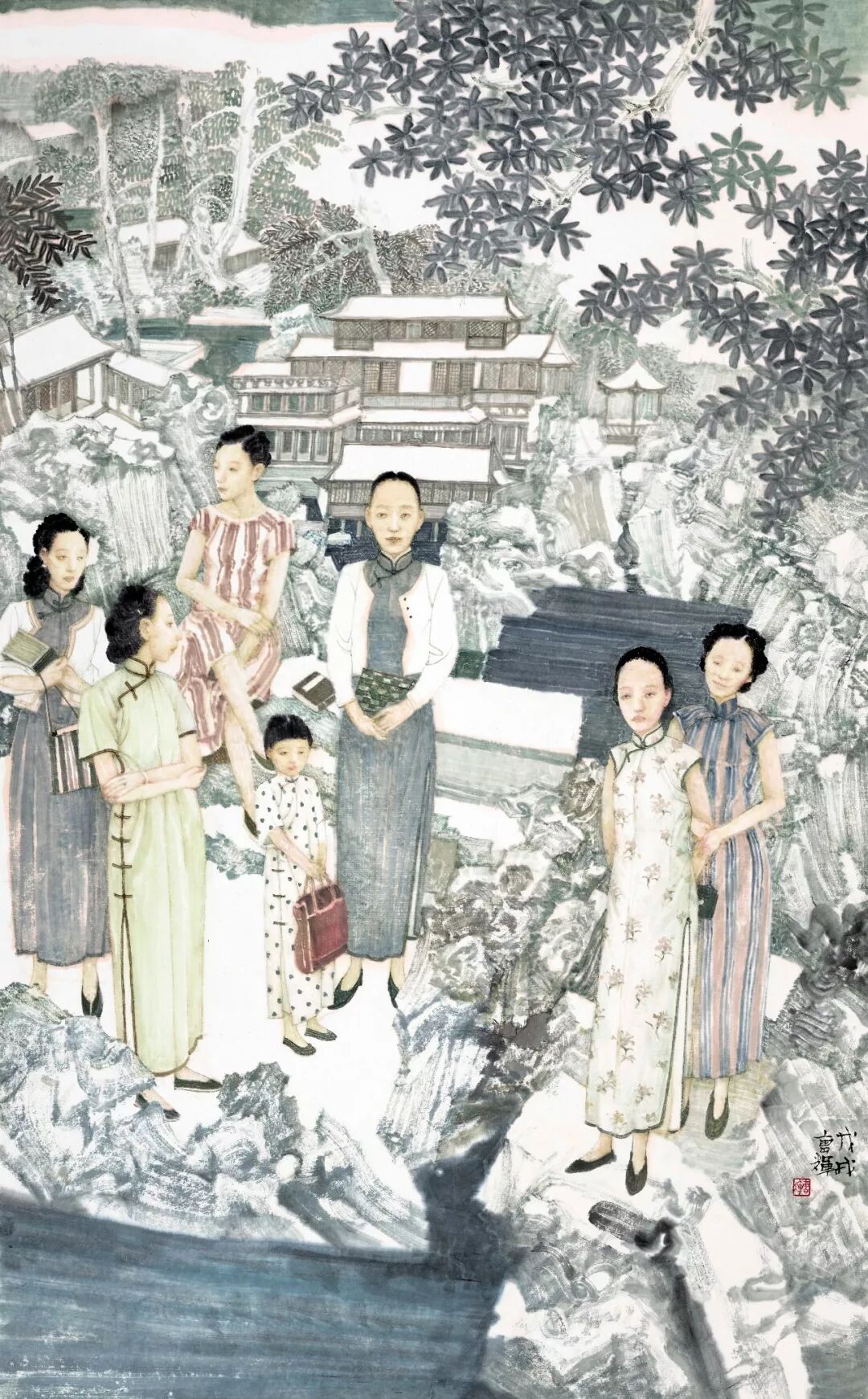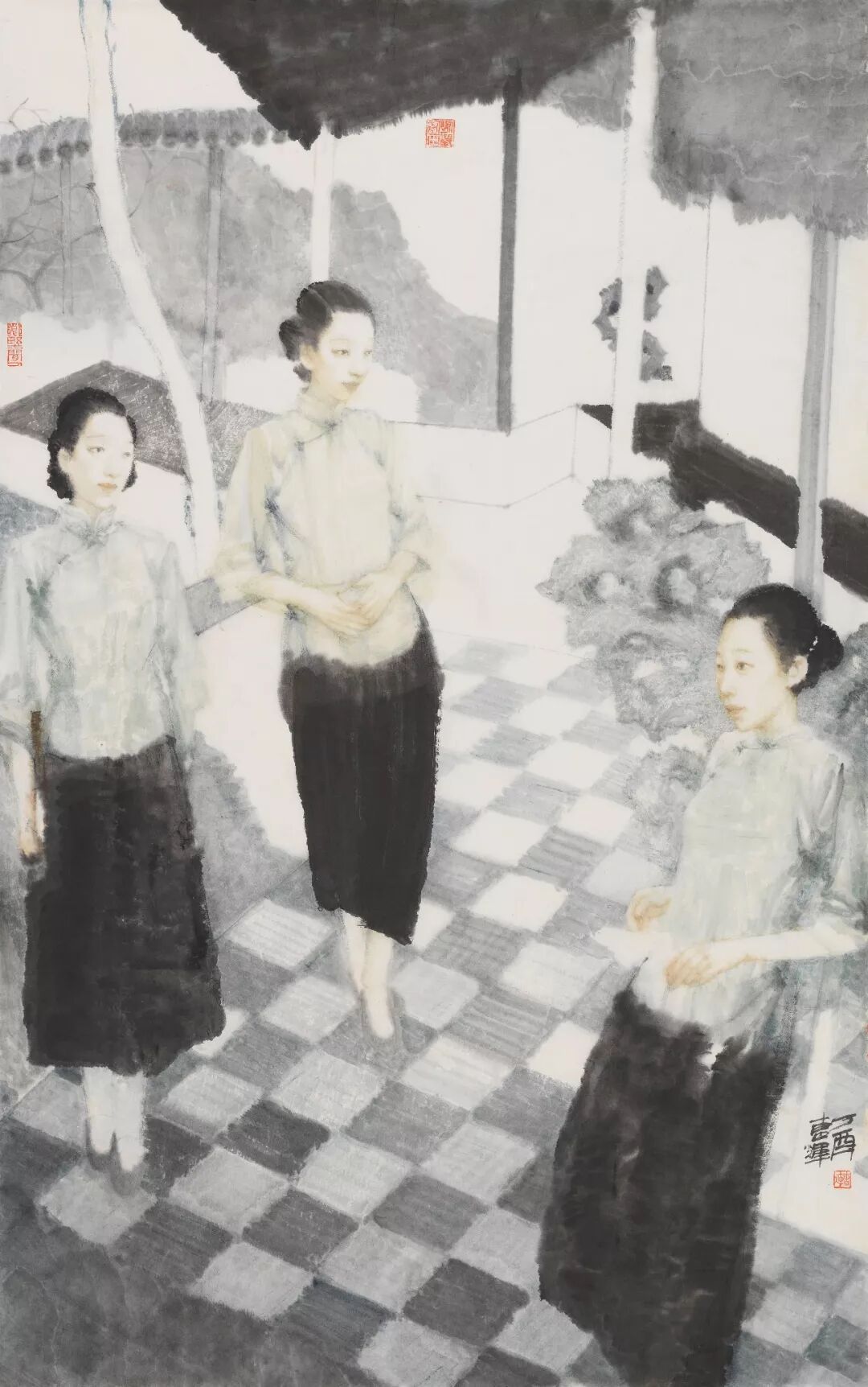 曹辉先生的艺术创作灵感来源于对民国时代的文化思考,但艺术语言表达却具备当代艺术性。他是中西方绘画艺术相交性的完美体现,用古意诠释过往时光的回忆,用水墨勾勒出中华民族的古典气质以及超越物质世俗之见下的潇洒气魄。同时曹辉艺术画面中传递的抽象思维以及严谨精致的造型传递出一种别样的时尚气息。梁实秋曾有一本名为《陌上谁人依旧·固守流年》的著作,梁实秋在这本书由深入浅的表述人生烟火,世情风俗谈有趣的人生。曹辉老师的艺术通过大量的观察将得到的人物和场景汇于心中,再通过抽象思维在画面中重新演绎。提笔即是故事,他让不同的女性人物齐聚于画面中,共处在一个我们以为是真实客观存在的场景中。通过这样的视觉语言言说岁月结成的茧,表述他对于生命以及时空的感怀。